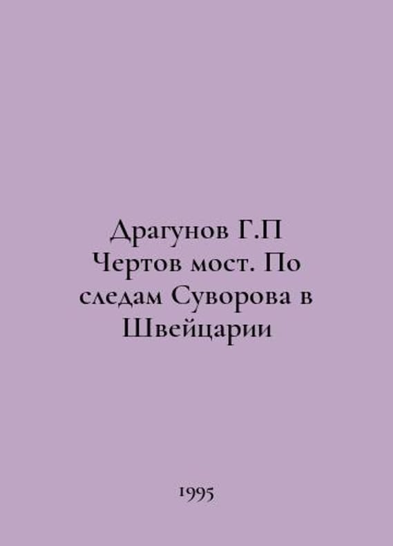 Dragunov G.P Devil Bridge. Following in Suvorovs footsteps in Switzerland In Russian /Dragunov G.P Chertov most. Po sledam Suvorova v Shveytsarii M. Thought 1995. You are welcome to reach out to us for a detailed description of the copies currently available. SKUalbb214a3f0f45c82d3.