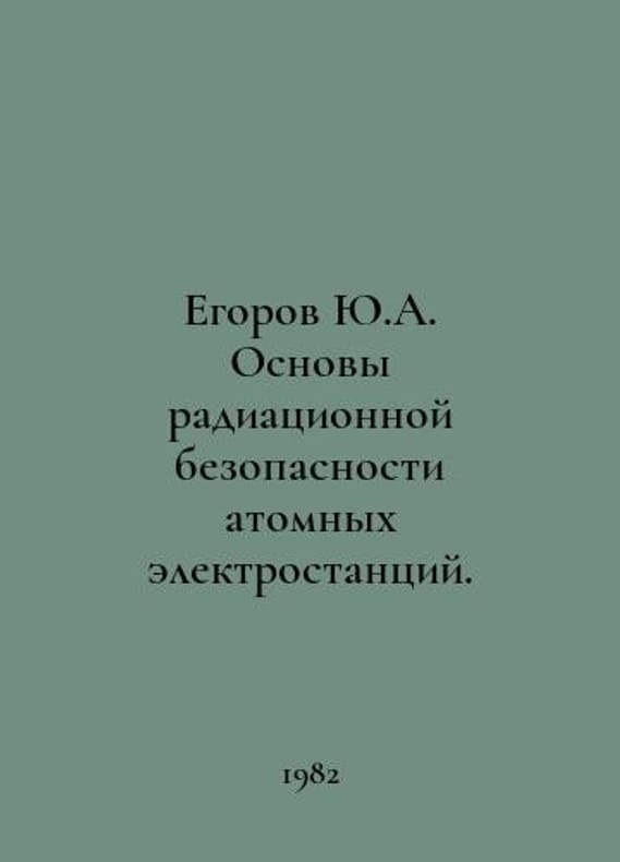 Yu.A. Egorov Basics of Radiation Safety at Nuclear Power Plants. In Russian /Egorov Yu.A. Osnovy radiatsionnoy bezopasnosti atomnykh elektrostantsiy. General Editorial Board: Academician N.A. Dollezhal. M.: Energoizdat, 1982.You are welcome to reach out to us for a detailed description of the copies currently available. SKUalbb2a7a86cfcf20164.