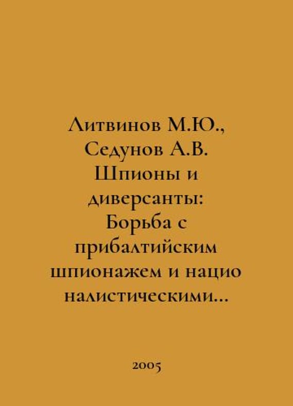 Litvinov M.Yu., Sedunov A.V. Spies and saboteurs: Fighting Baltic espionage and nationalist gangs in North-West Russia. In Russian /Litvinov M.Yu., Sedunov A.V. Shpiony i diversanty: Borba s pribaltiyskim shpionazhem i natsionalisticheskimi bandformirovaniyami na Severo-Zapade Rossii. Series: Pskov Historical Library. Pskov: Pskov Regional Printing House, 2005. You are welcome to reach out to us for a detailed description of the copies currently available. Delivery of this book may take longer than usual including extended processing and pre-shipping time, no expedited shipping is available. Please advise us if you have a set date or a deadline to receive your order.SKUalbb5ac9b31ce210e98