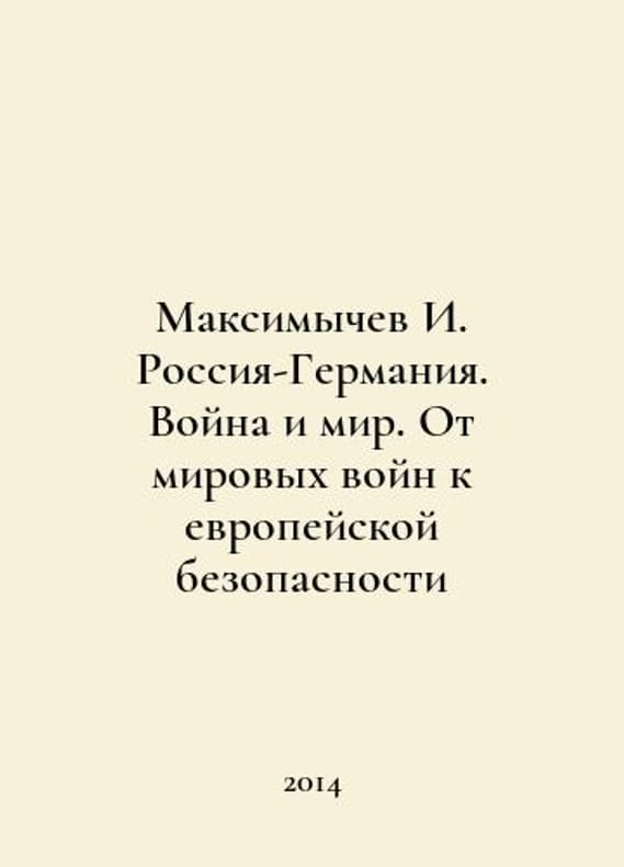 Maksimychev I. Russia-Germany. War and Peace. From World Wars to European Security In Russian /Maksimychev I. Rossiya-Germaniya. Voyna i mir. Ot mirovykh voyn k evropeyskoy bezopasnosti The Book World Moscow 2014..You are welcome to reach out to us for a detailed description of the copies currently available. Delivery of this book may take longer than usual including extended processing and pre-shipping time, no expedited shipping is available. Please advise us if you have a set date or a deadline to receive your order. SKUalbb5ca3c0239783c4d