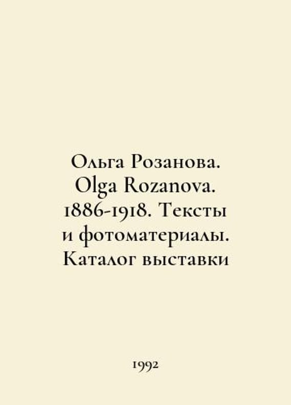 Olga Rozanova. Olga Rozanova. 1886-1918. Texts and photo materials. Exhibition catalogue In Russian /Olga Rozanova. Olga Rozanova. 1886-1918. Teksty i fotomaterialy. Katalog vystavki The Vucetich Art and Production Association. Helsinki Kaupungin Taidemuseo 1992. You are welcome to reach out to us for a detailed description of the copies currently available. Delivery of this book may take longer than usual including extended processing and pre-shipping time, no expedited shipping is available. Please advise us if you have a set date or a deadline to receive your order.SKUalbb5fc41f6eee847c5