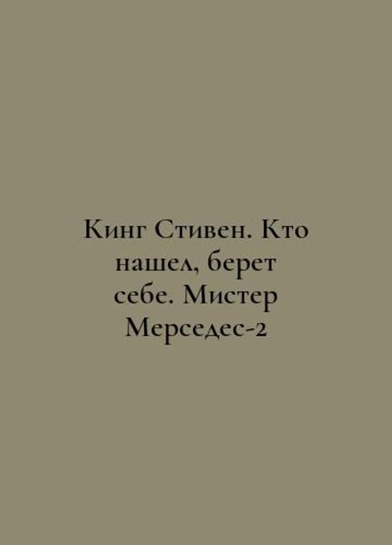 King Stephen. Who found it, takes it. Mr. Mercedes-2 In Russian /King Stiven. Kto nashel, beret sebe. Mister Mersedes-2 Series: Screen Hits: King M. ACT 2021 448 s..You are welcome to reach out to us for a detailed description of the copies currently available. Delivery of this book may take longer than usual including extended processing and pre-shipping time, no expedited shipping is available. Please advise us if you have a set date or a deadline to receive your order. SKUalbb62744a5b98d41de