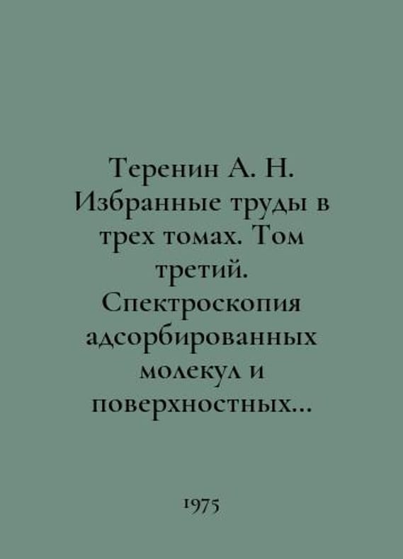 Terenin A. N. Selected works in three volumes. Volume Three. Spectroscopy of adsorbed molecules and surface compounds In Russian /Terenin A. N. Izbrannye trudy v trekh tomakh. Tom tretiy. Spektroskopiya adsorbirovannykh molekul i poverkhnostnykh soedineniy Leningrad Science 1975.You are welcome to reach out to us for a detailed description of the copies currently available. SKUalbb66171f428a9da8b.