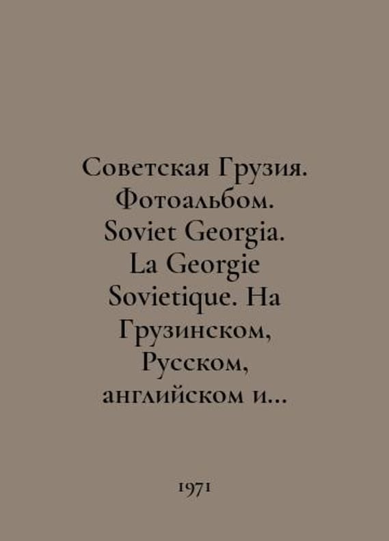 Soviet Georgia. Photo album. Soviet Georgia. La Georgie Sovietique. In Georgian, Russian, English and French. In Russian /Sovetskaya Gruziya. Fotoalbom. Soviet Georgia. La Georgie Sovietique. Na Gruzinskom, Russkom, angliyskom i frantsuzskom yazykakh. Author / Compiler: Chiaureli V. Tbilisi. Soviet Georgia. 1971. You are welcome to reach out to us for a detailed description of the copies currently available. SKUalbb6a19f0784b0fa3f.