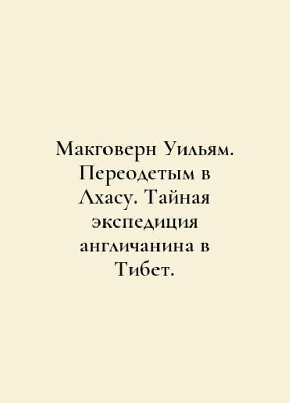 McGovern William. disguised as Lhasa. An Englishmans secret expedition to Tibet. In Russian /Makgovern Uilyam. Pereodetym v Lkhasu. Taynaya ekspeditsiya anglichanina v Tibet. Series: A World History. November2024. 304s. You are welcome to reach out to us for a detailed description of the copies currently available. Delivery of this book may take longer than usual including extended processing and pre-shipping time, no expedited shipping is available. Please advise us if you have a set date or a deadline to receive your order.SKUalbb6a32e4953176b36