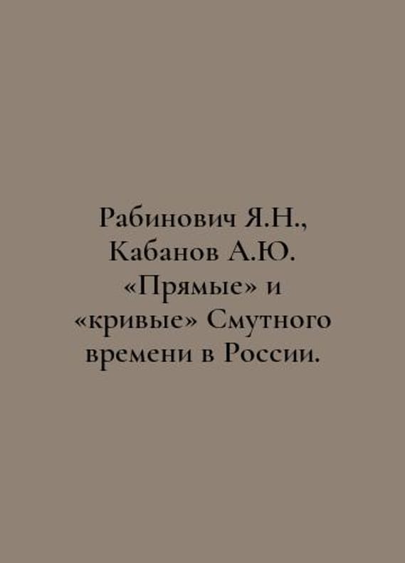 Rabinovich Ya.N., Kabanov A.Y.Straight lines and curves of troubled times in Russia. In Russian /Rabinovich Ya.N., Kabanov A.Yu. Pryamye i krivye Smutnogo vremeni v Rossii. M.: Quadriga 2022. 508s. You are welcome to reach out to us for a detailed description of the copies currently available. Delivery of this book may take longer than usual including extended processing and pre-shipping time, no expedited shipping is available. Please advise us if you have a set date or a deadline to receive your order.SKUalbb77ea124f6661274