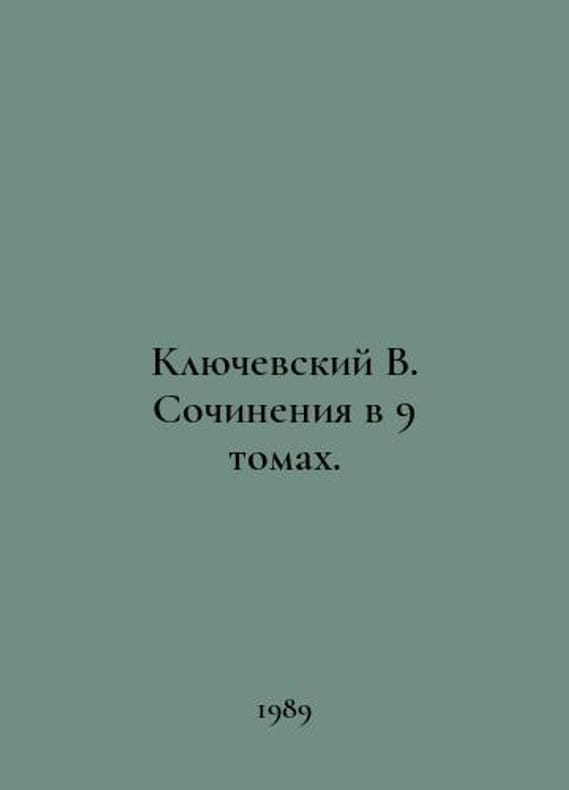 Klyuchevsky V. Essays in 9 Volumes. In Russian /Klyuchevskiy V. Sochineniya v 9 tomakh. Volume 5 M Thought 1989. You are welcome to reach out to us for a detailed description of the copies currently available. Delivery of this book may take longer than usual including extended processing and pre-shipping time, no expedited shipping is available. Please advise us if you have a set date or a deadline to receive your order.SKUalbb78eb448af6abb17