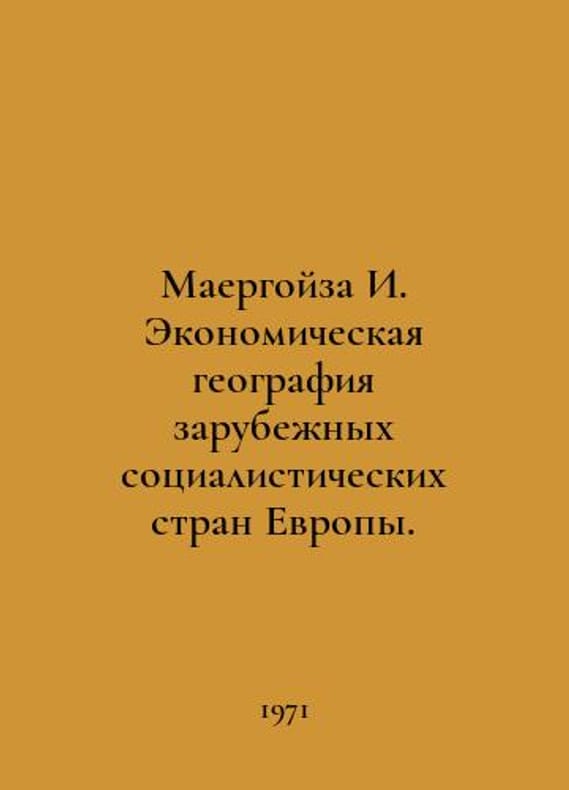 Maergoisa I. The Economic Geography of Europes Foreign Socialist Countries. In Russian /Maergoyza I. Ekonomicheskaya geografiya zarubezhnykh sotsialisticheskikh stran Evropy. Moscow Publishing House. Univ. 1971..You are welcome to reach out to us for a detailed description of the copies currently available. Delivery of this book may take longer than usual including extended processing and pre-shipping time, no expedited shipping is available. Please advise us if you have a set date or a deadline to receive your order. SKUalbb7df571fa1f34fbc