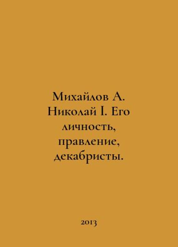 Mikhailov A. Nikolai I. His Personality, Board, Decembrists. In Russian /Mikhaylov A. Nikolay I. Ego lichnost, pravlenie, dekabristy. Moscow Publishing House V. Sekachev 2013. You are welcome to reach out to us for a detailed description of the copies currently available. Delivery of this book may take longer than usual including extended processing and pre-shipping time, no expedited shipping is available. Please advise us if you have a set date or a deadline to receive your order.SKUalbb82b50f1d6efbbf2