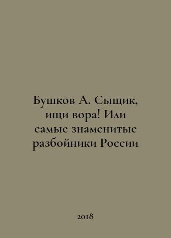 A. Bushkov, search for a thief Or the most famous robbers in Russia In Russian /Bushkov A. Syshchik, ishchi vora Ili samye znamenitye razboyniki Rossii Series: Former Russia M. Capital 2018. You are welcome to reach out to us for a detailed description of the copies currently available. Delivery of this book may take longer than usual including extended processing and pre-shipping time, no expedited shipping is available. Please advise us if you have a set date or a deadline to receive your order.SKUalbb8383b68f8ed047e