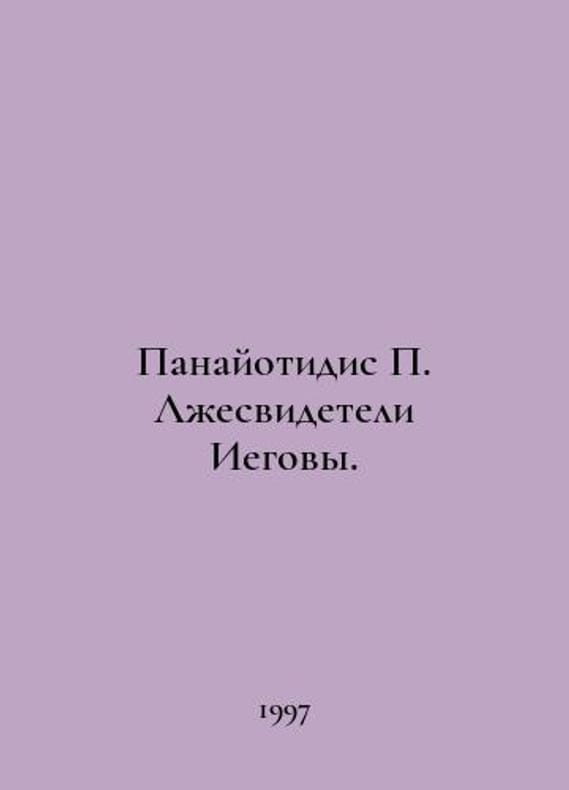 Panagiotidis Jehovahs False Witnesses. In Russian /Panayotidis Lzhesvideteli Iegovy. Translation from Greek. Thessaloniki: The Orthodox Beekeeper 1997..You are welcome to reach out to us for a detailed description of the copies currently available. Delivery of this book may take longer than usual including extended processing and pre-shipping time, no expedited shipping is available. Please advise us if you have a set date or a deadline to receive your order. SKUalbb8beb442e5994342