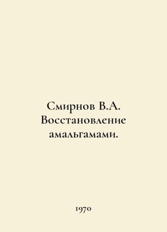 Smirnov V.A. Amalgam restoration. In Russian /Smirnov V.A. Vosstanovlenie amalgamami. L. Chemistry 1970..You are welcome to reach out to us for a detailed description of the copies currently available. Delivery of this book may take longer than usual including extended processing and pre-shipping time, no expedited shipping is available. Please advise us if you have a set date or a deadline to receive your order. SKUalbb9d2369fda1ef10e