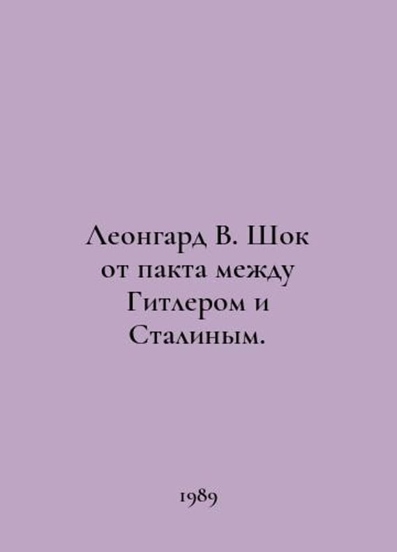Leonhard W. Shock at the Pact between Hitler and Stalin. In Russian /Leongard V. Shok ot pakta mezhdu Gitlerom i Stalinym. Memories of contemporaries with him. London 1989. You are welcome to reach out to us for a detailed description of the copies currently available. Delivery of this book may take longer than usual including extended processing and pre-shipping time, no expedited shipping is available. Please advise us if you have a set date or a deadline to receive your order.SKUalbbd0bbcead2dd67d1