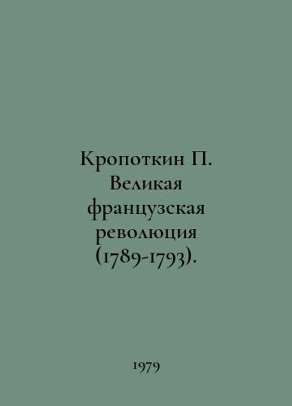 Kropotkin The Great French Revolution (1789-1793). In Russian /Kropotkin Velikaya frantsuzskaya revolyutsiya (1789-1793). M Science 1979. You are welcome to reach out to us for a detailed description of the copies currently available. Delivery of this book may take longer than usual including extended processing and pre-shipping time, no expedited shipping is available. Please advise us if you have a set date or a deadline to receive your order.SKUalbbd1856378320c71a