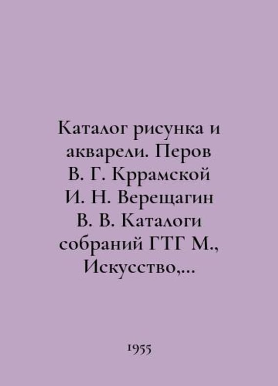 Catalogue of Drawing and Watercolours. Perov V. G. Krramskoy I. N. Vereshchagin V. V. Catalogues of Collections of GTG Moscow, Art, 1956 In Russian /Katalog risunka i akvareli. Perov V. G. Krramskoy I. N. Vereshchagin V. V. Katalogi sobraniy GTG M., Iskusstvo, 1956 Art 1955. You are welcome to reach out to us for a detailed description of the copies currently available. SKUalbbda6504447163359.