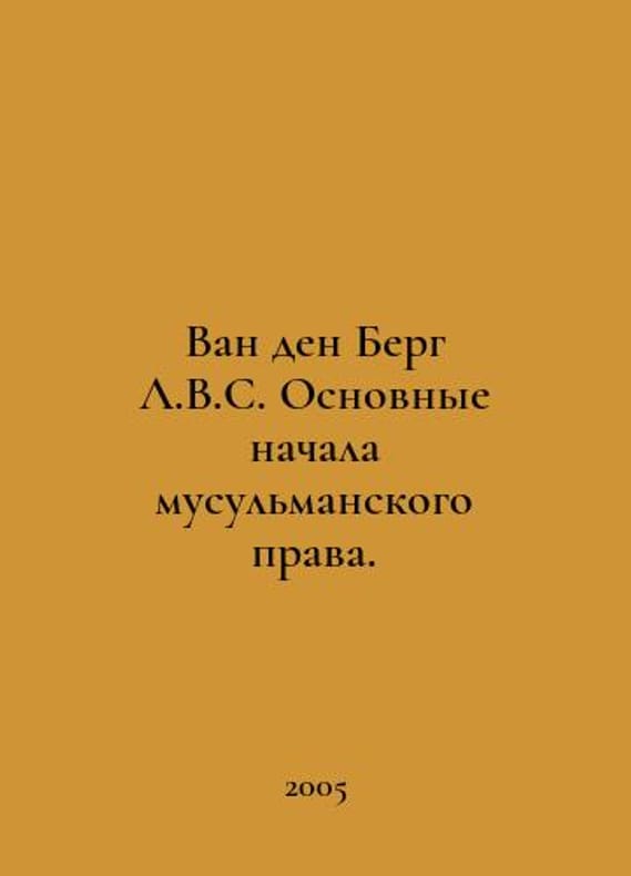 Van den Berg L.W.S. Basic Principles of Muslim Law. In Russian /Van den Berg L.V.S. Osnovnye nachala musulmanskogo prava. M. Natalis 2005. You are welcome to reach out to us for a detailed description of the copies currently available. Delivery of this book may take longer than usual including extended processing and pre-shipping time, no expedited shipping is available. Please advise us if you have a set date or a deadline to receive your order.SKUalbbe0e5bd5f1758166