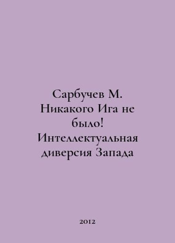 Sarbuchev M. There was no Iga The Wests Intellectual Diversion In Russian /Sarbuchev M. Nikakogo Iga ne bylo Intellektualnaya diversiya Zapada M Yausa, Exmo 2012. You are welcome to reach out to us for a detailed description of the copies currently available. Delivery of this book may take longer than usual including extended processing and pre-shipping time, no expedited shipping is available. Please advise us if you have a set date or a deadline to receive your order.SKUalbbfc4a0a3668f48f1