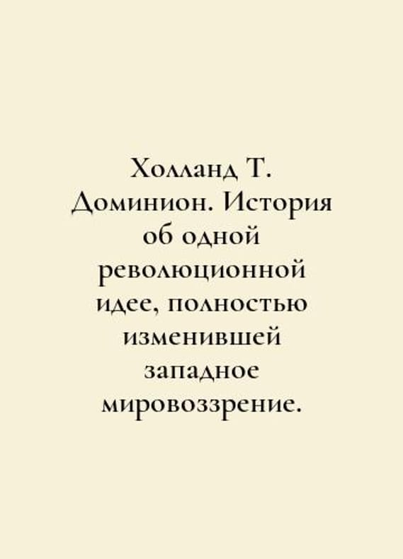Holland T. Dominion: The story of a revolutionary idea that completely changed the Western worldview. In Russian /Kholland T. Dominion. Istoriya ob odnoy revolyutsionnoy idee, polnostyu izmenivshey zapadnoe mirovozzrenie. Translated from English by Istomin K.. series: Time Travelers, M. Eksmo 2021, 720 pp. You are welcome to reach out to us for a detailed description of the copies currently available. Delivery of this book may take longer than usual including extended processing and pre-shipping time, no expedited shipping is available. Please advise us if you have a set date or a deadline to receive your order.SKUalbc1b33c804a14c088