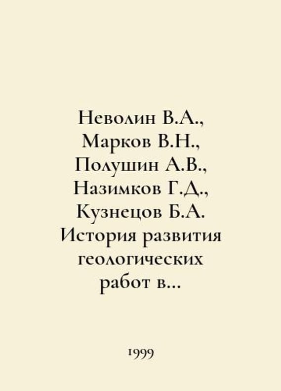 Nevolin V.A., Markov V.N., Polushin A.V., Nazimkov G.D., Kuznetsov B.A. History of development of geological works in Central Siberia and its mineral and raw material base. In Russian /Nevolin V.A., Markov V.N., Polushin A.V., Nazimkov G.D., Kuznetsov B.A. Istoriya razvitiya geologicheskikh rabot v Tsentralnoy Sibiri i ee mineralno-syrevaya baza. To the 300th Anniversary of the Mining and Geological Survey of Russia (1700-2000). Photographs. Krasnoyarsk KGU 1999.You are welcome to reach out to us for a detailed description of the copies currently available. SKUalbc4b35d0cf3b57826.