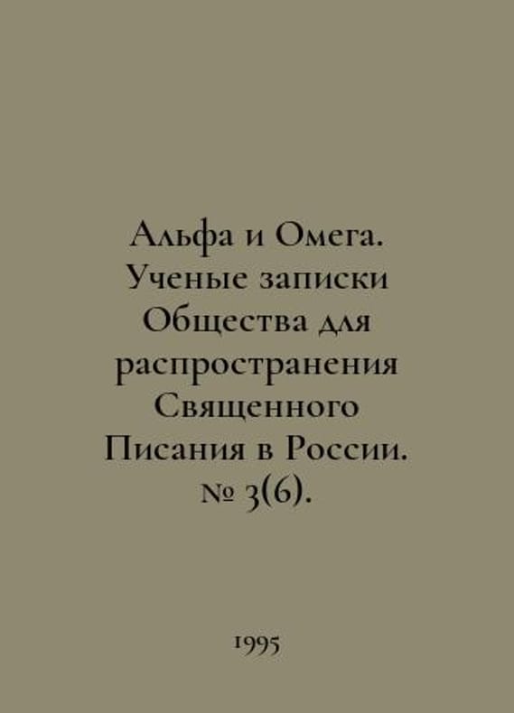 Alpha and Omega. Scientists note the Society for the Distribution of Holy Scripture in Russia. # 3 (6). In Russian /Alfa i Omega. Uchenye zapiski Obshchestva dlya rasprostraneniya Svyashchennogo Pisaniya v Rossii. # 3(6). M. Bobrenev Monastery of the Diocese of Moscow. 1995..You are welcome to reach out to us for a detailed description of the copies currently available. Delivery of this book may take longer than usual including extended processing and pre-shipping time, no expedited shipping is available. Please advise us if you have a set date or a deadline to receive your order. SKUalbc5c2a8fb2272b374
