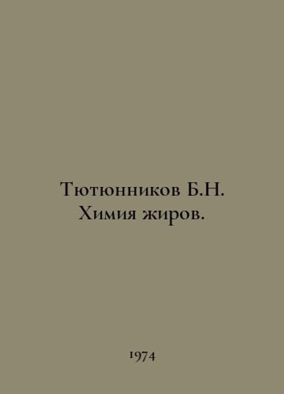Tyutyunnikov B.N. Fat Chemistry. In Russian /Tyutyunnikov B.N. Khimiya zhirov. M Food Industry 1974..You are welcome to reach out to us for a detailed description of the copies currently available. Delivery of this book may take longer than usual including extended processing and pre-shipping time, no expedited shipping is available. Please advise us if you have a set date or a deadline to receive your order. SKUalbc6024709a6b5813a
