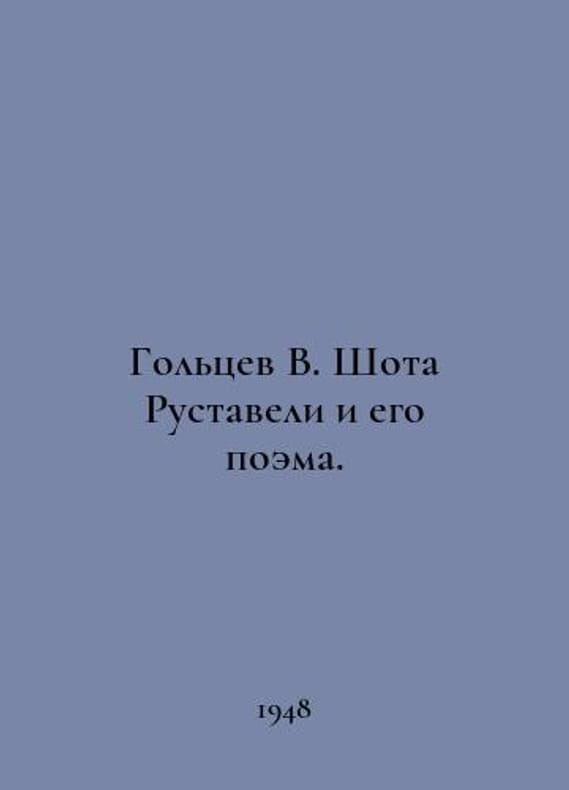 Goltsev V. Shota Rustaveli and his poem. In Russian /Goltsev V. Shota Rustaveli i ego poema. Tbilisi Dawn of the East 1948. You are welcome to reach out to us for a detailed description of the copies currently available. SKUalbc61422670ed61fc9.