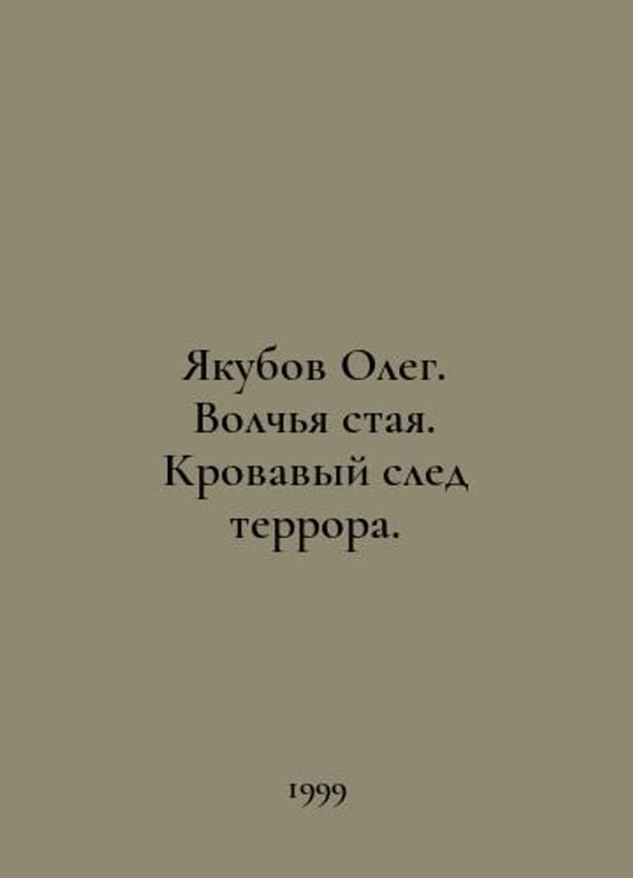Yakubov Oleg. Wolf pack. Bloody trail of terror. In Russian /Yakubov Oleg. Volchya staya. Krovavyy sled terrora. M. VECHE. 1999. You are welcome to reach out to us for a detailed description of the copies currently available. Delivery of this book may take longer than usual including extended processing and pre-shipping time, no expedited shipping is available. Please advise us if you have a set date or a deadline to receive your order.SKUalbc651f1068c0d68ff