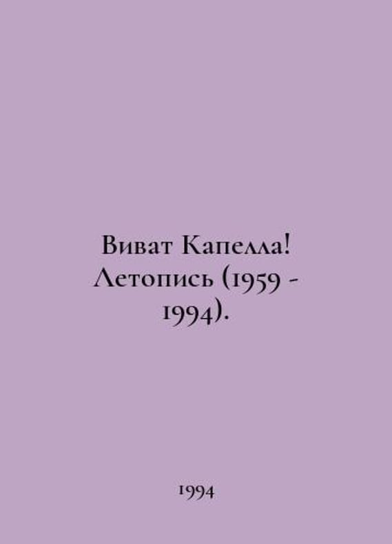 Vivat Cappella Chronicle (1959 - 1994). In Russian /Vivat Kapella Letopis (1959 - 1994). Authorized by N.Z. Shaforostova. Vivat capella Tomsk TSU 1994. You are welcome to reach out to us for a detailed description of the copies currently available. Delivery of this book may take longer than usual including extended processing and pre-shipping time, no expedited shipping is available. Please advise us if you have a set date or a deadline to receive your order.SKUalbc65e5517f4fd0906