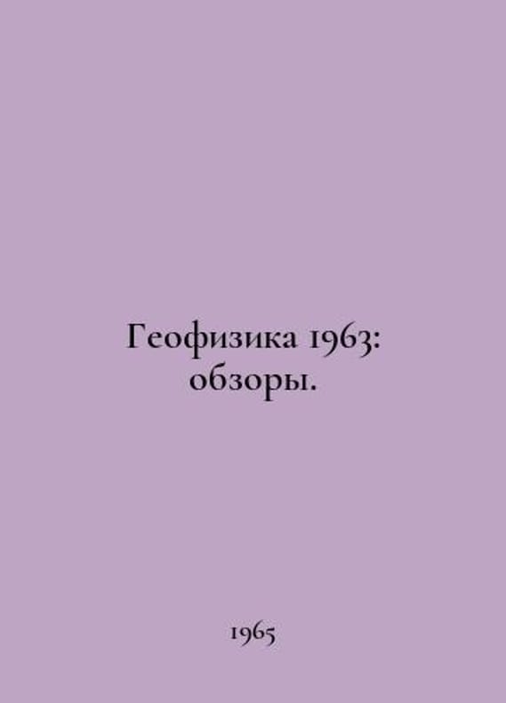 Geophysics 1963: Reviews. In Russian /Geofizika 1963: obzory. Series: The Results of Science. Moscow Academy of Sciences (AS) of the USSR.You are welcome to reach out to us for a detailed description of the copies currently available. SKUalbc7202ec0e013d118.