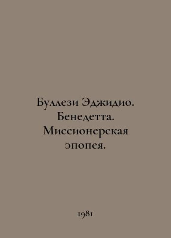Bullesi Egidio. Benedetta. Missionary epic. In Russian /Bullezi Edzhidio. Benedetta. Missionerskaya epopeya. Italy. Benedetta Bianchi Porro Foundation 1981..You are welcome to reach out to us for a detailed description of the copies currently available. Delivery of this book may take longer than usual including extended processing and pre-shipping time, no expedited shipping is available. Please advise us if you have a set date or a deadline to receive your order. SKUalbc8428245ef5e4e4c