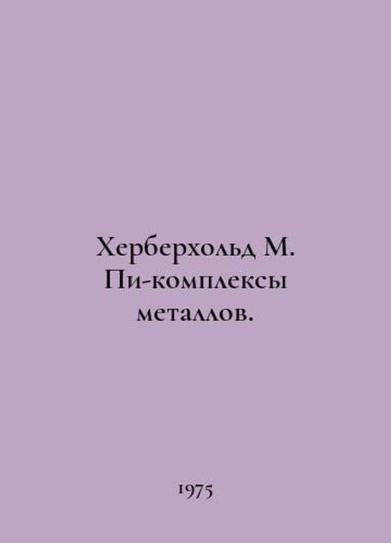 Herberhold M. Pi-complexes of metals. In Russian /Kherberkhold M. Pi-kompleksy metallov. Complexes with monolefin ligands. Translated from M. Mir 1975..You are welcome to reach out to us for a detailed description of the copies currently available. Delivery of this book may take longer than usual including extended processing and pre-shipping time, no expedited shipping is available. Please advise us if you have a set date or a deadline to receive your order. SKUalbc8c03f479628d327