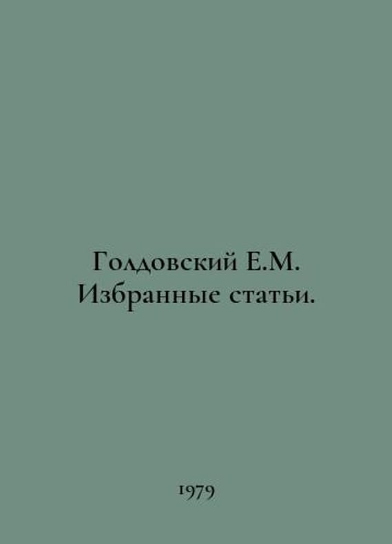 Goldovsky E.M. Selected Articles. In Russian /Goldovskiy E.M. Izbrannye stati. M. Art 1979. You are welcome to reach out to us for a detailed description of the copies currently available. Delivery of this book may take longer than usual including extended processing and pre-shipping time, no expedited shipping is available. Please advise us if you have a set date or a deadline to receive your order.SKUalbc90edc974ae9e11c