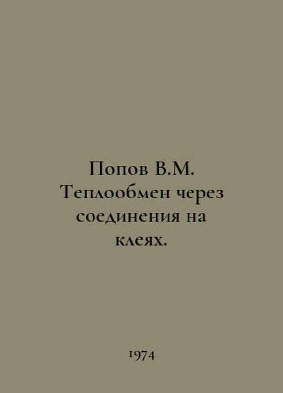 Popov V.M. Heat exchange through adhesive joints. In Russian /Popov V.M. Teploobmen cherez soedineniya na kleyakh. Moscow Energy 1974.You are welcome to reach out to us for a detailed description of the copies currently available. SKUalbc98bc8841c71a182.