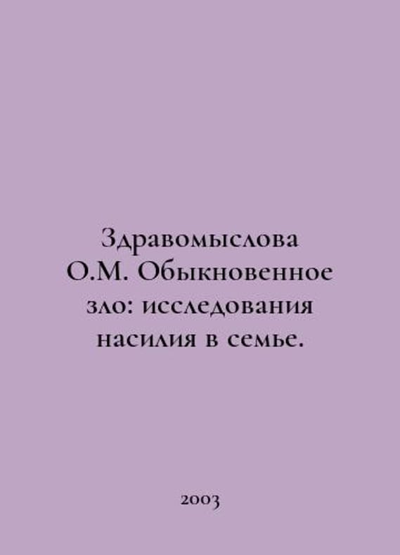 O.M. Common Evil: Research on Domestic Violence. In Russian /Zdravomyslova O.M. Obyknovennoe zlo: issledovaniya nasiliya v seme. M. Yediatric URSS 2003.You are welcome to reach out to us for a detailed description of the copies currently available. SKUalbc99f0d90c99d8615.