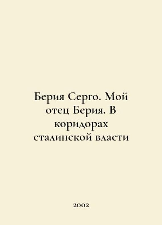 Beria Sergo. My father Beria. In the corridors of Stalins power In Russian /Beriya Sergo. Moy otets Beriya. V koridorakh stalinskoy vlasti Series: The Olma Press Archive 2002. You are welcome to reach out to us for a detailed description of the copies currently available. Delivery of this book may take longer than usual including extended processing and pre-shipping time, no expedited shipping is available. Please advise us if you have a set date or a deadline to receive your order.SKUalbcb057a12236233de