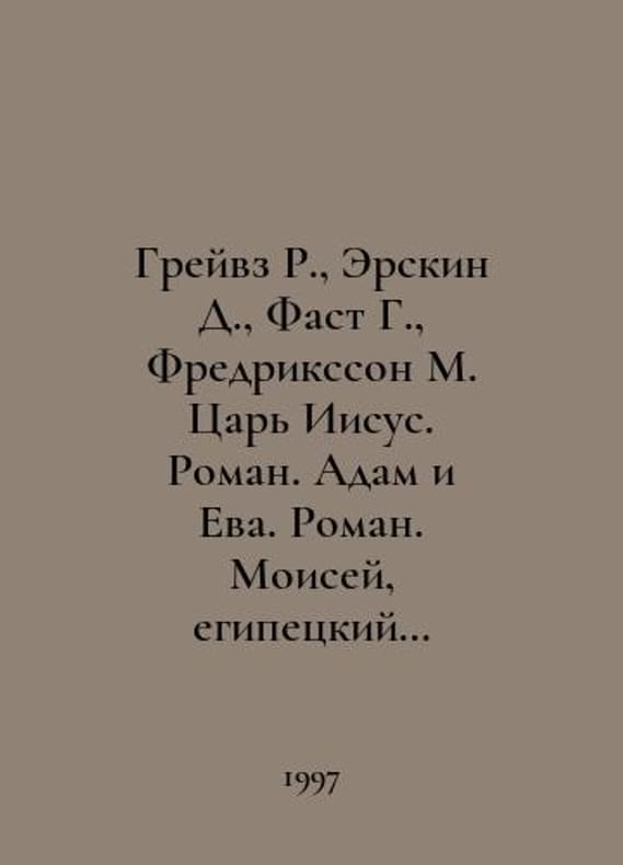 Graves R., Erskine D., Fast G., Fredriksson M. King Jesus. Roman. Adam and Eve. Roman. Moses, the Egyptian king. Roman. Children of Paradise. Roman.-4 books In Russian /Greyvz R., Erskin D., Fast G., Fredriksson M. Tsar Iisus. Roman. Adam i Eva. Roman. Moisey, egipetskiy tsarevich. Roman. Deti raya. Roman.-4 knigi Series: Bible stories in novels. Moscow Armada. 1997-1998..You are welcome to reach out to us for a detailed description of the copies currently available. Delivery of this book may take longer than usual including extended processing and pre-shipping time, no expedited shipping is available. Please advise us if you have a set date or a deadline to receive your order. SKUalbcbf6a5cb2c07b6b9