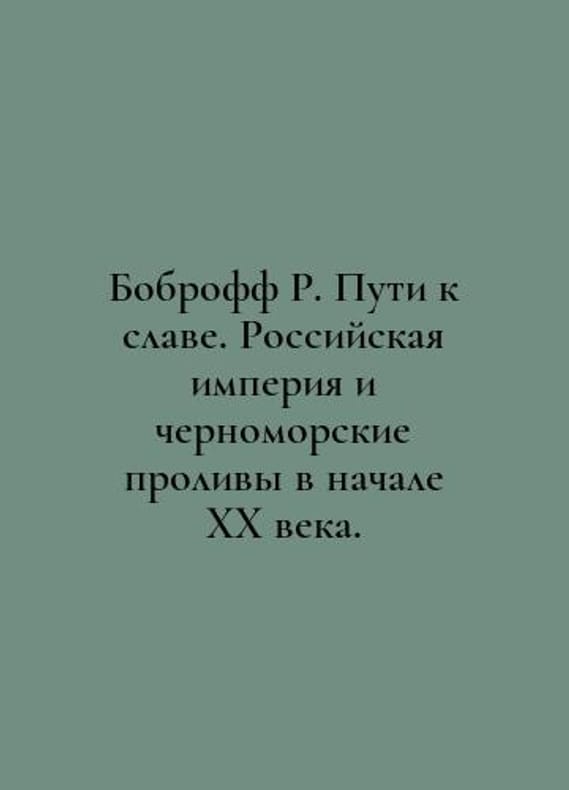 Bobroff R. Path to Glory. The Russian Empire and the Black Sea Straits in the early twentieth century. In Russian /Bobroff R. Puti k slave. Rossiyskaya imperiya i chernomorskie prolivy v nachale XX veka. Series: Modern Western Russian Studies. Boston, St. Petersburg, Academic Studies Press. Bibliorossiya, 2022. 327 You are welcome to reach out to us for a detailed description of the copies currently available. Delivery of this book may take longer than usual including extended processing and pre-shipping time, no expedited shipping is available. Please advise us if you have a set date or a deadline to receive your order.SKUalbcc8ebebb244d1bc9