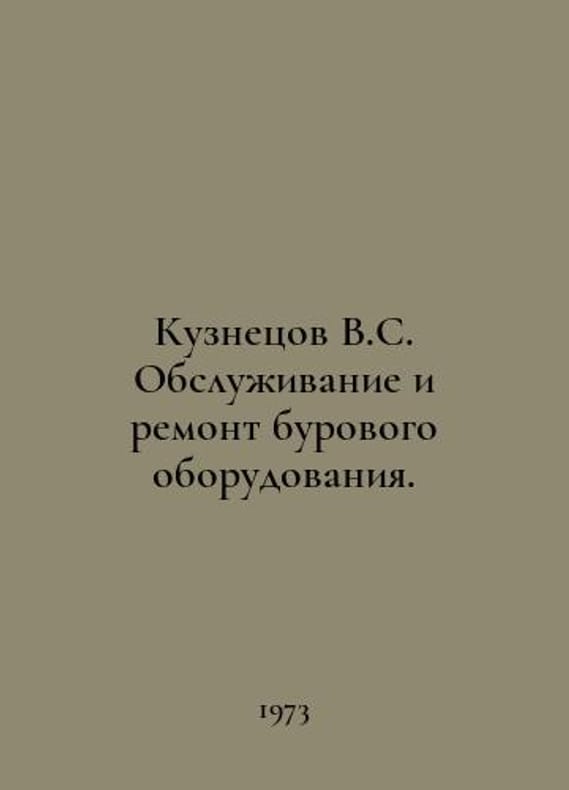 Kuznetsov V.C. Maintenance and repair of drilling equipment. In Russian /Kuznetsov V.S. Obsluzhivanie i remont burovogo oborudovaniya. M. Nedras Textbook 1973..You are welcome to reach out to us for a detailed description of the copies currently available. Delivery of this book may take longer than usual including extended processing and pre-shipping time, no expedited shipping is available. Please advise us if you have a set date or a deadline to receive your order. SKUalbccd656030413260d