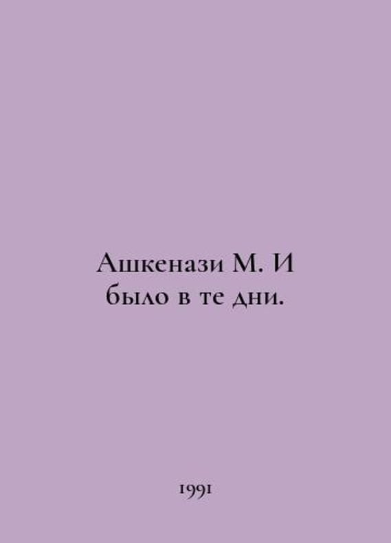 Ashkenazi M. And it was in those days. In Russian /Ashkenazi M. I bylo v te dni. Essays, memoirs Novgorod 1991. You are welcome to reach out to us for a detailed description of the copies currently available. Delivery of this book may take longer than usual including extended processing and pre-shipping time, no expedited shipping is available. Please advise us if you have a set date or a deadline to receive your order.SKUalbcd756c0bc3637e88