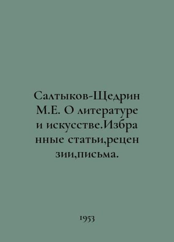 Saltykov-Shchedrin M.E. On Literature and Art. Selected Articles, Reviews, Letters. In Russian /Saltykov-Shchedrin M.E. O literature i iskusstve.Izbrannye stati,retsenzii,pisma. Editorial Board, introductory article and notes by L.F.Ershov, M. Art. 1953. You are welcome to reach out to us for a detailed description of the copies currently available. Delivery of this book may take longer than usual including extended processing and pre-shipping time, no expedited shipping is available. Please advise us if you have a set date or a deadline to receive your order.SKUalbcdf9820e913f540b