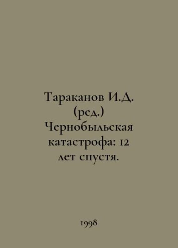 I. D. cockroaches (ed.) Chernobyl disaster: 12 years later. In Russian /Tarakanov I.D. (red.) Chernobylskaya katastrofa: 12 let spustya. Materials of international scientific and practical conferences dedicated to the tenth and twelfth anniversary of the Chernobyl disaster (April 10, 1996 and April 24, 1998).You are welcome to reach out to us for a detailed description of the copies currently available. SKUalbce61b7dc86c26edb.