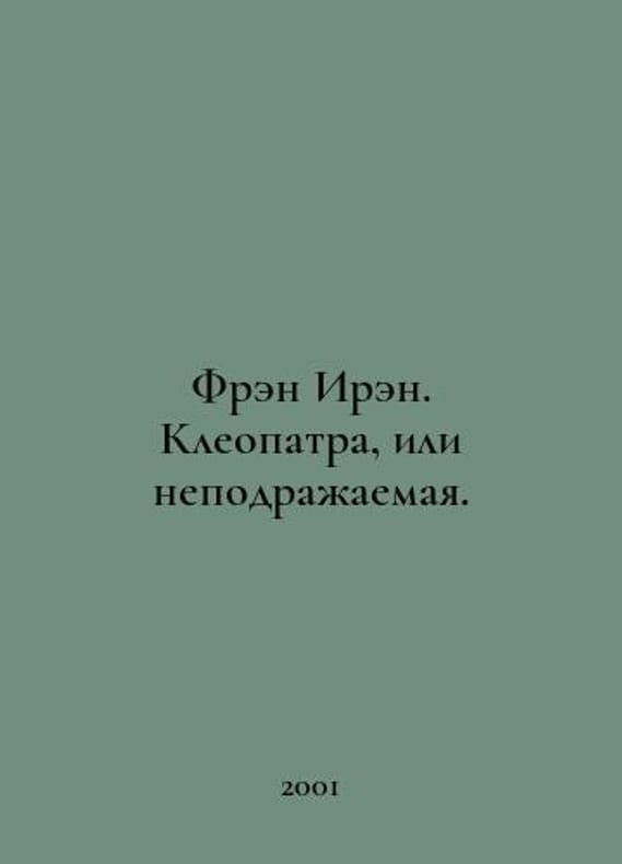 Fran Irene. Cleopatra, or inimitable. In Russian /Fren Iren. Kleopatra, ili nepodrazhaemaya. The series: The lives of remarkable people. (LZL). M. Young Guard 2001.You are welcome to reach out to us for a detailed description of the copies currently available. SKUalbcea5a0c50fa3c3f7.