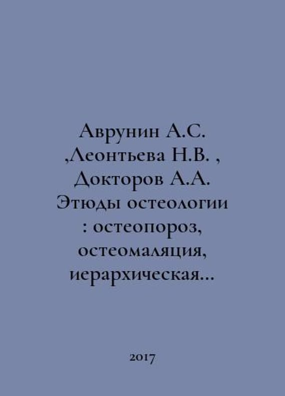 Avrunin A.S., Leontieva N.V., Doctorov A.A. Etudes of osteoporosis, osteomalacia, skeletal hierarchical organization, calculated modeling of skeletal mechanical properties and the formation of fatigue microinjuries, theoretical basis of biologically expedient treatment of bone mass loss In Russian /Avrunin A.S. ,Leonteva N.V. , Doktorov A.A. Etyudy osteologii : osteoporoz, osteomalyatsiya, ierarkhicheskaya organizatsiya skeleta, raschetnoe modelirovanie mekhanicheskikh svoystv skeleta i formirovaniya ustalostnykh mikropovrezhdeniy, teoreticheskie osnovy biologicheski tselesoobraznogo lecheniya poteri kostnoy mass SPb 2017..You are welcome to reach out to us for a detailed description of the copies currently available. Delivery of this book may take longer than usual including extended processing and pre-shipping time, no expedited shipping is available. Please advise us if you have a set date or a deadline to receive your order. SKUalbced4ce495c18f0bc