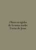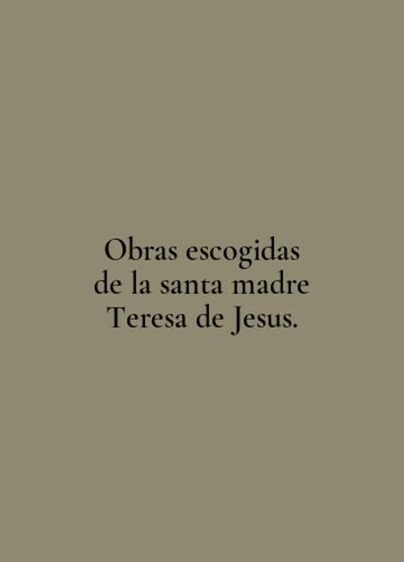 Obras escogidas de la santa madre Theresa de Jesus. In English /Obras escogidas de la santa madre Teresa de Jesus. Selected Works of the Holy Mother Teresa of Avila (Jesus). In Spanish. London-Paris Nelson and Sons. 544You are welcome to reach out to us for a detailed description of the copies currently available. Delivery of this book may take longer than usual including extended processing and pre-shipping time, no expedited shipping is available. Please advise us if you have a set date or a deadline to receive your order. SKUalbcf0426903b3f0eed