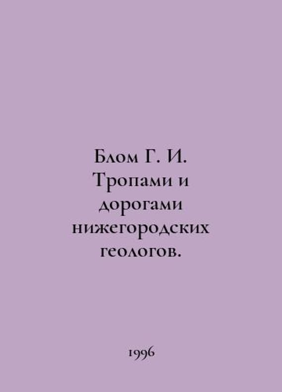 Blom of G. I. Tropes and roads of Nizhny Novgorod geologists. In Russian /Blom G. I. Tropami i dorogami nizhegorodskikh geologov. Blom G. I. Tropes and roads of Nizhny Novgorod geologists. 1996. You are welcome to reach out to us for a detailed description of the copies currently available. Delivery of this book may take longer than usual including extended processing and pre-shipping time, no expedited shipping is available. Please advise us if you have a set date or a deadline to receive your order. SKUalbcf174e9638f4e99e