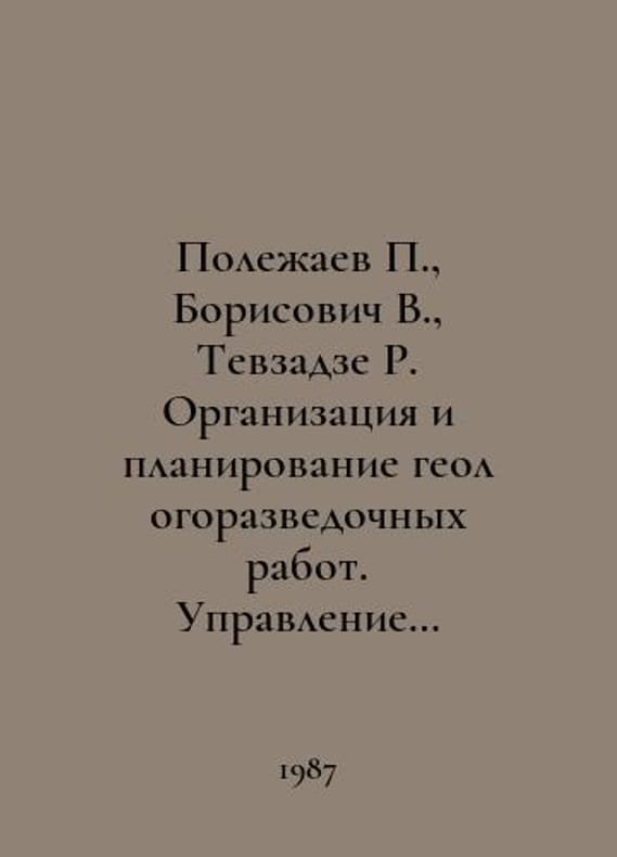 Polezhaev , Borisovich V., Tevzadze R. Organization and planning of geological exploration works. Management of geological exploration enterprise In Russian /Polezhaev , Borisovich V., Tevzadze R. Organizatsiya i planirovanie geologorazvedochnykh rabot. Upravlenie geologorazvedochnym predpriyatiem Textbook. M. Nedra, 1987..You are welcome to reach out to us for a detailed description of the copies currently available. Delivery of this book may take longer than usual including extended processing and pre-shipping time, no expedited shipping is available. Please advise us if you have a set date or a deadline to receive your order. SKUalbcfcd9b5dd5edcb80