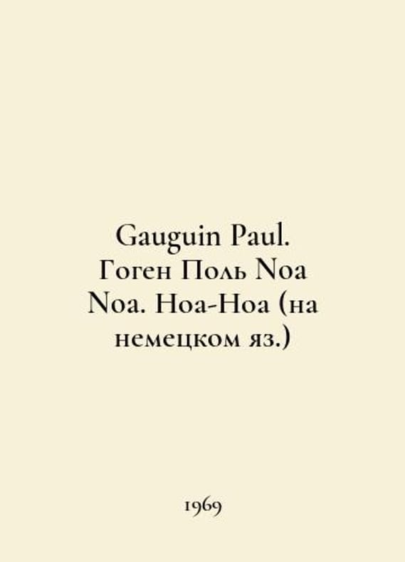 Gauguin Paul. Gauguin Paul Noa Noa Noa. Noah (in German) In German /Gauguin Paul. Gogen Pol Noa Noa. Noa-Noa (na nemetskom yaz.) In German, Berlin Henschelverlag 1969. You are welcome to reach out to us for a detailed description of the copies currently available. SKUalbd0ae6d8961c94e54.