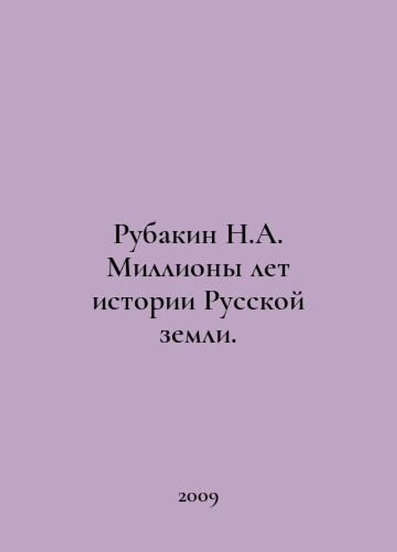 Rubakin N.A. Millions of years of the history of the Russian land. In Russian /Rubakin N.A. Milliony let istorii Russkoy zemli. M. Belye alvy. 2009. 368s. We have thousands of titles and often several copies of each title may be available. Please feel free to contact us for a detailed description of the copies available. SKUalb3b7a99f797668293.