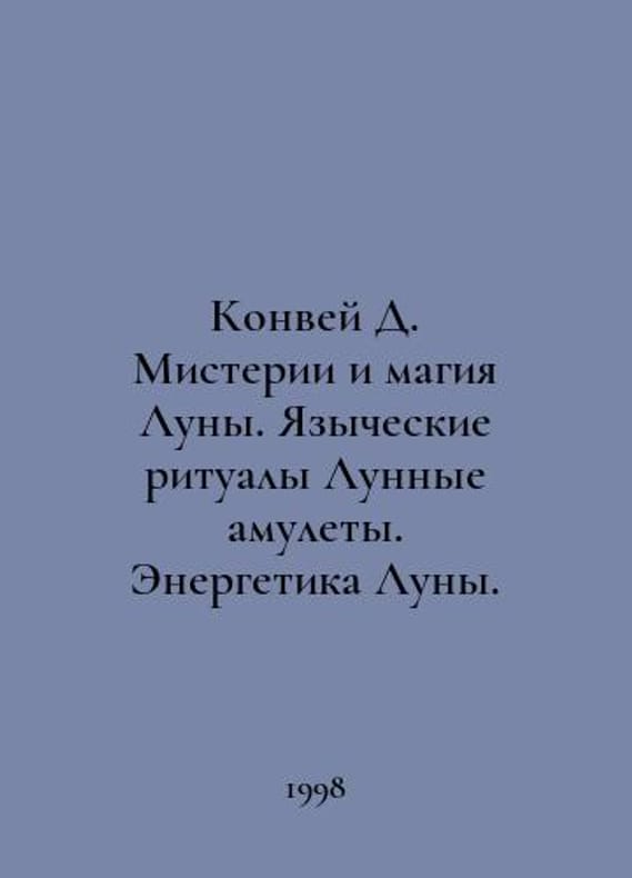 Conway D. Mystery and the magic of the Moon. Pagan rituals Moon amulets. Moon energy. In Russian /Konvey D. Misterii i magiya Luny. Yazycheskie ritualy Lunnye amulety. Energetika Luny. Translation from English by M. Vackler. 1998.You are welcome to reach out to us for a detailed description of the copies currently available. SKUalbd33308173ac8a205.