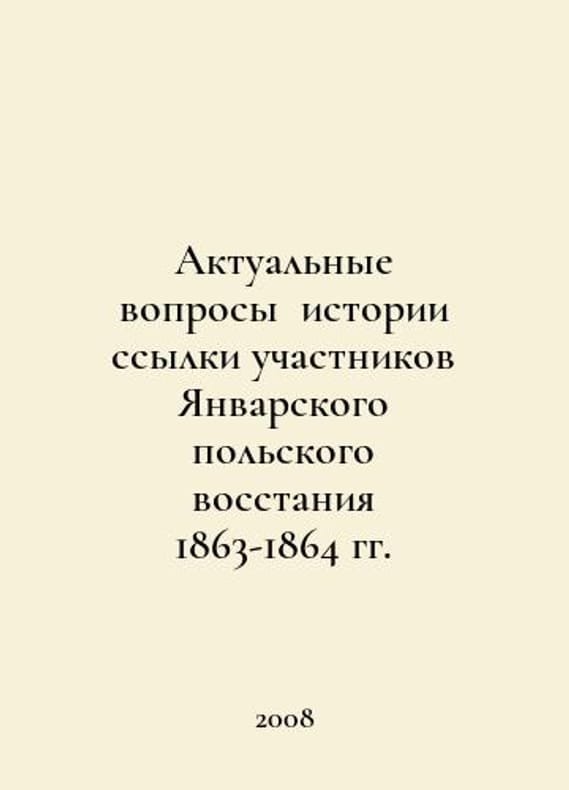 Actual issues of the history of exile of the participants of the January Polish Uprising of 1863-1864 In Russian /Aktualnye voprosy istorii ssylki uchastnikov Yanvarskogo polskogo vosstaniya 1863-1864 gg. Proceedings of the International Scientific Conference (Irkutsk, September 26-30, 2007). Edited by B.S. Shostakovich. Irkutsk. Megaprint. 2008. You are welcome to reach out to us for a detailed description of the copies currently available. Delivery of this book may take longer than usual including extended processing and pre-shipping time, no expedited shipping is available. Please advise us if you have a set date or a deadline to receive your order.SKUalbd3374d294d09629d